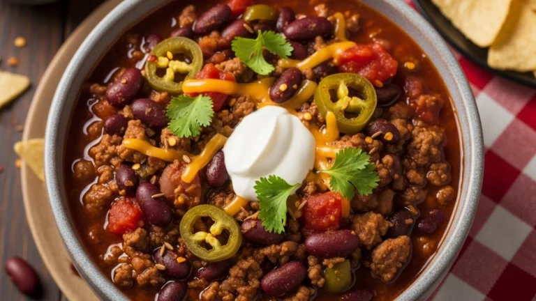 Hearty slow cooker chili made with ground beef, beans, tomatoes, and spices. This easy crockpot chili recipe is rich, comforting, and perfect for weeknights, game day, and make‑ahead meals.