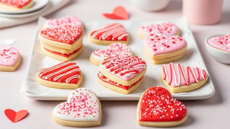 Bake soft Valentine’s sugar cookies that hold their shape and decorate them with pink, red, and white icing. These heart-shaped cut-out sugar cookies are perfect for Valentine’s Day gifts, parties, and cookie decorating fun.