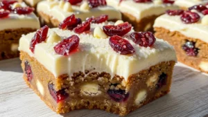 These homemade cranberry bliss bars bring all the cozy, festive coffee shop vibes straight to your kitchen. Soft, chewy, and topped with tangy cream cheese frosting, they’re a must-bake treat for the holiday season—and a guaranteed crowd-pleaser on any dessert table.