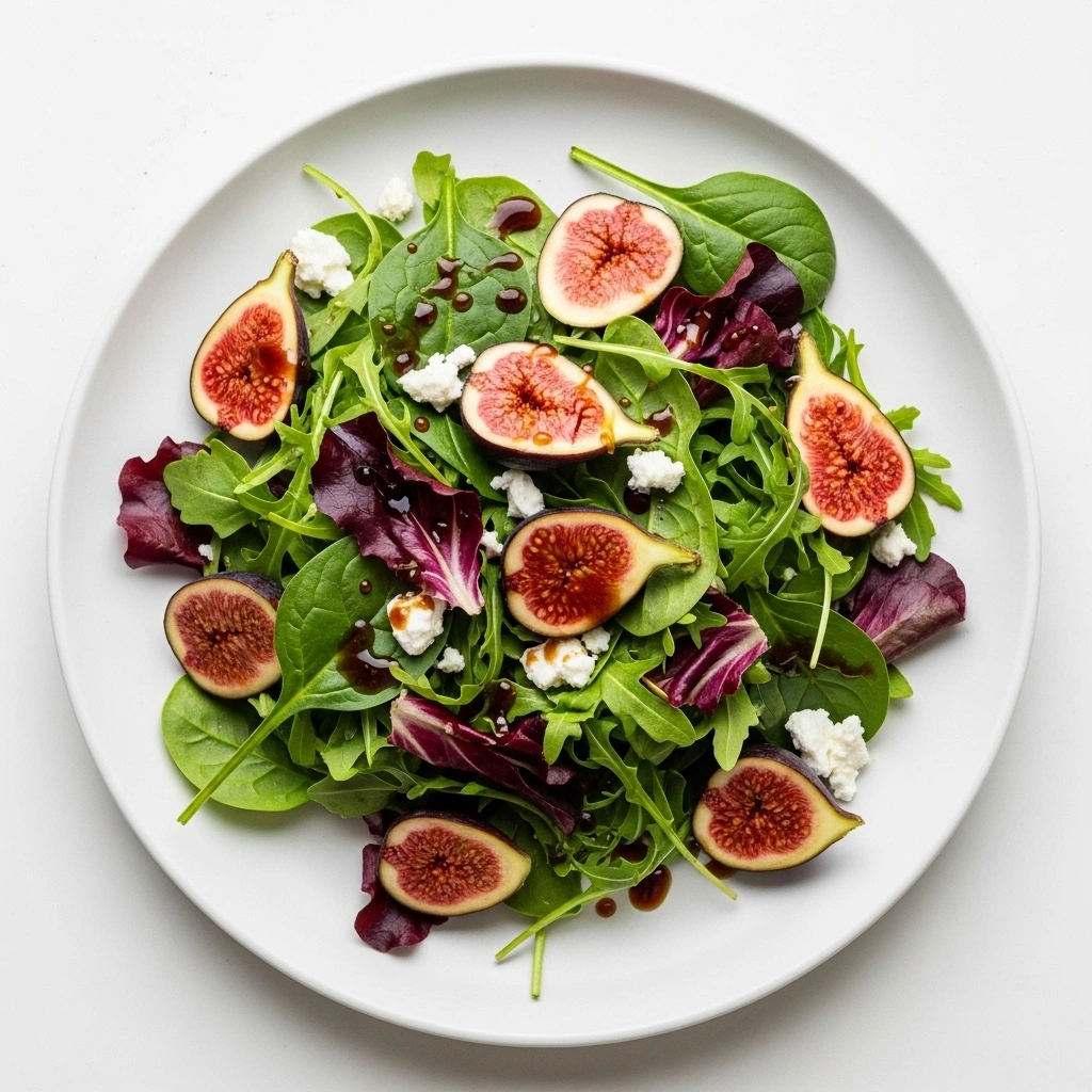 15. Autumn Greens with Fig Vinaigrette – Mixed greens with fresh figs, prosciutto, and fig-balsamic dressing