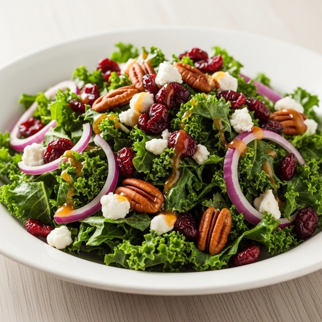 4. Cranberry Kale Salad – Hearty kale with dried cranberries, sunflower seeds, and maple dressing