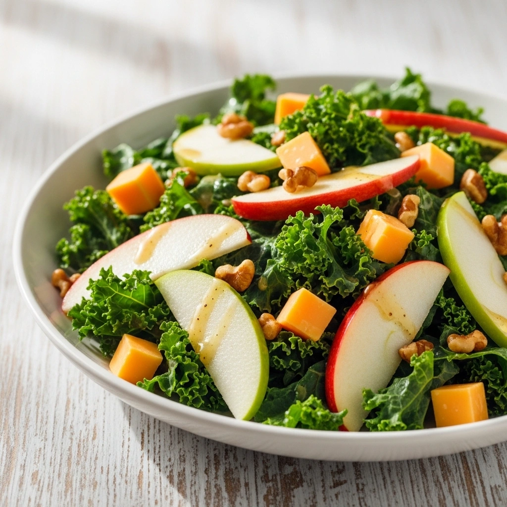13. Kale Salad with Apple & Cheddar – Massaged kale with crisp apples, sharp cheddar, and pecans