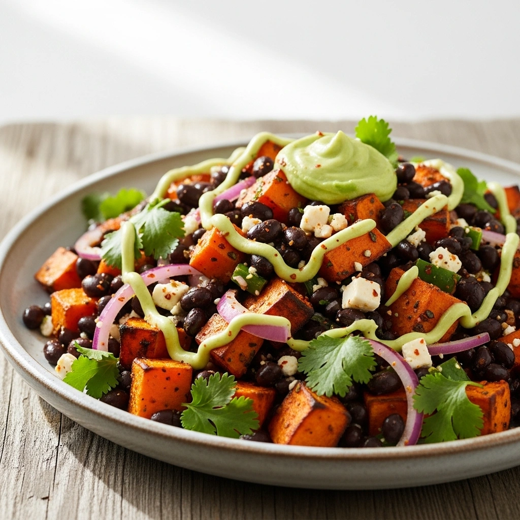 12. Sweet Potato & Black Bean Salad – Roasted sweet potato with black beans and cilantro lime dressing