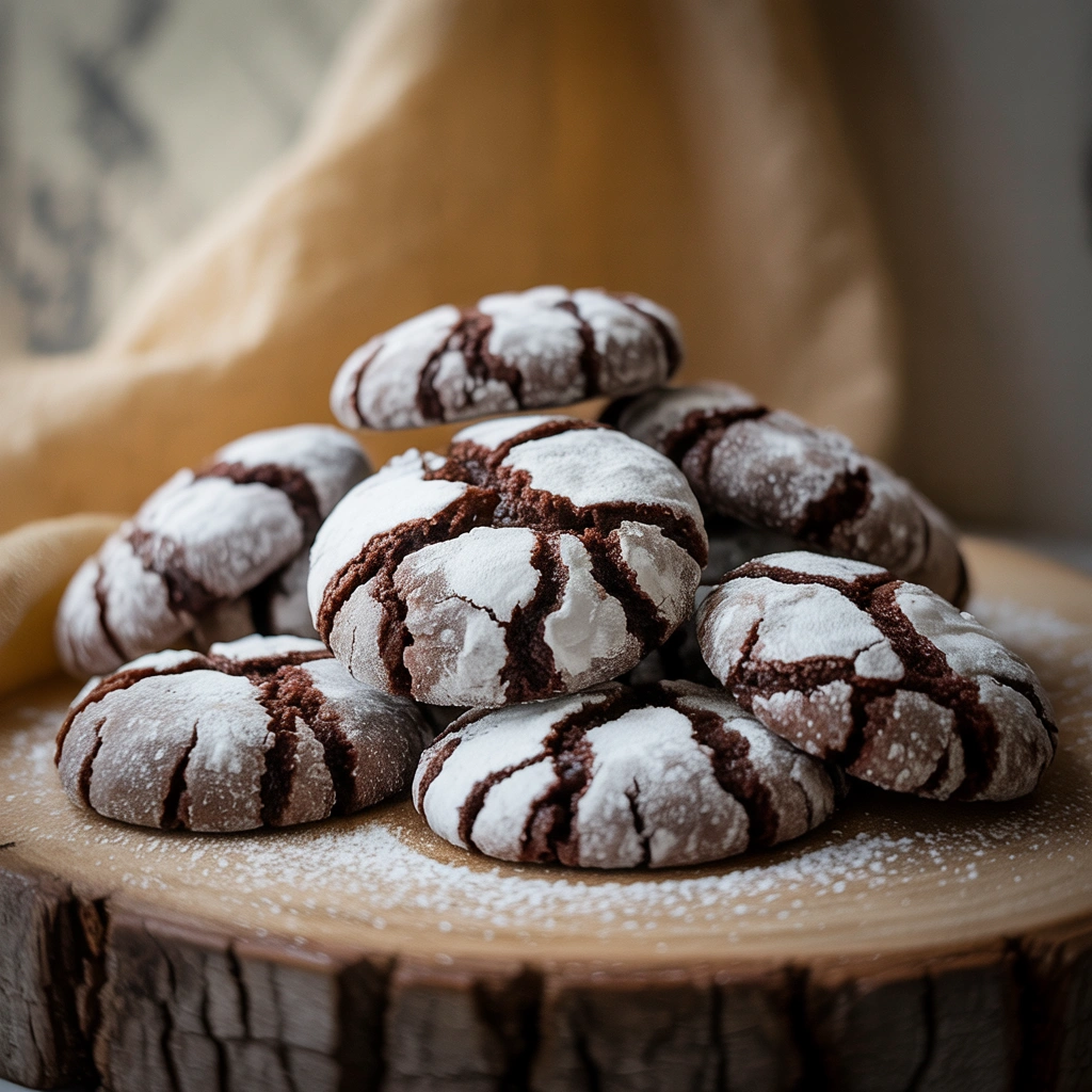 Rich, fudgy chocolate crinkle cookies rolled in powdered sugar and baked until crackled. These classic holiday cookies are soft inside, crisp at the edges, and perfect for Christmas and winter baking.