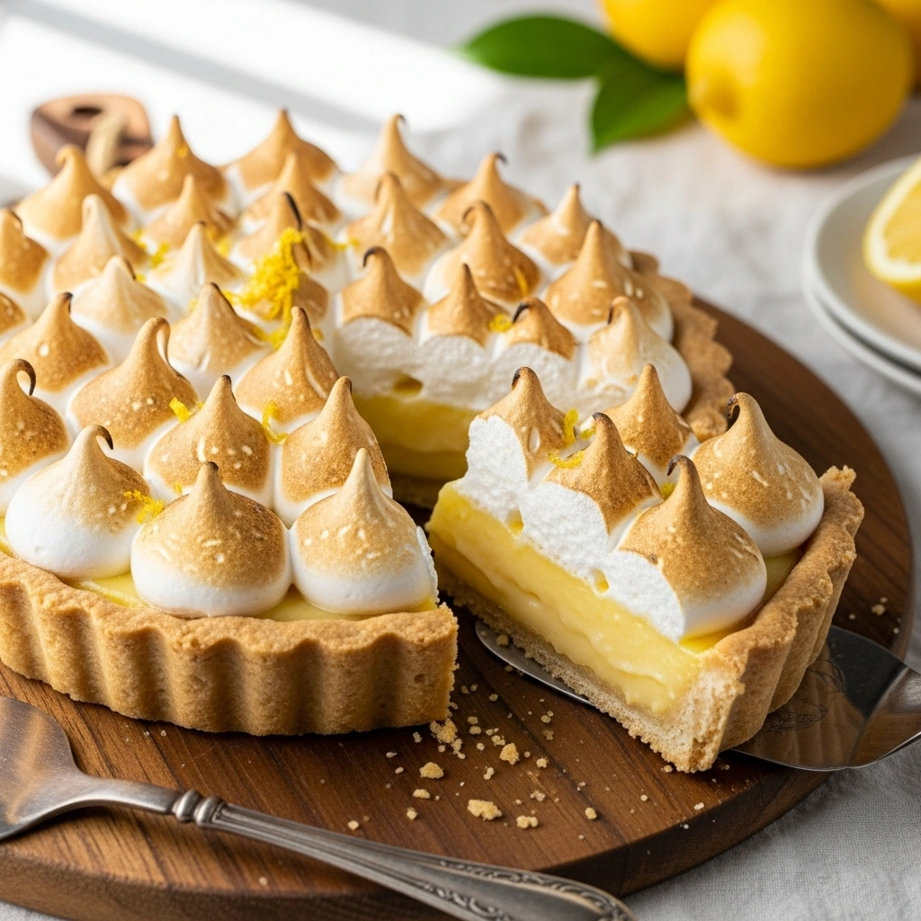 - Bake 12–15 minutes at 175°C / 350°F, until meringue is golden. Cool 1–2 hours at room temp, then chill at least 2 hours before slicing.