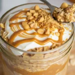 Creamy peanut butter overnight oats made with rolled oats, Greek yogurt, and peanut butter. This easy make‑ahead breakfast is high in protein and perfect for busy mornings and meal prep.