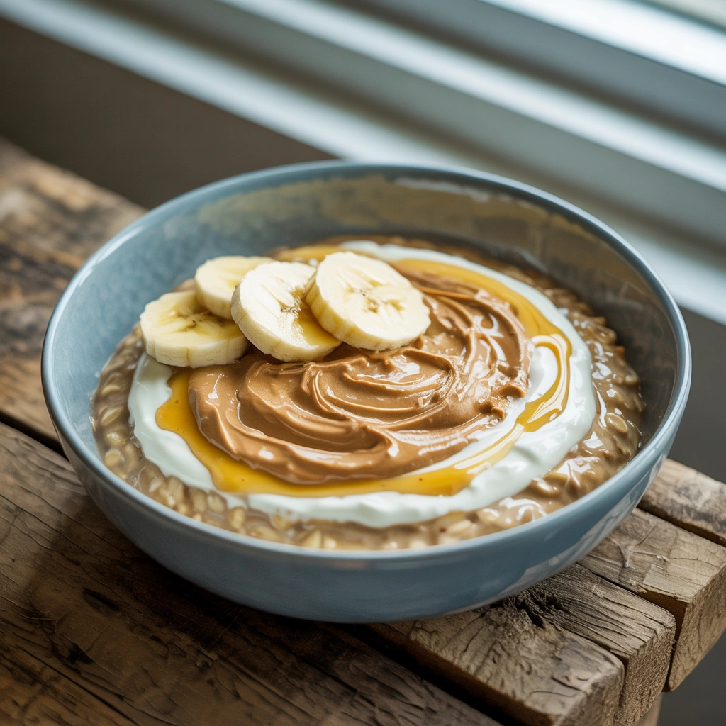 Thick, creamy peanut butter overnight oats made with rolled oats, Greek yogurt, and peanut butter. A high‑protein, no‑cook breakfast you can prep in minutes for busy mornings.
