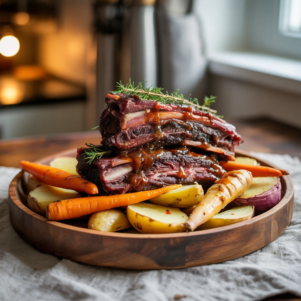 Fall‑off‑the‑bone slow cooker short ribs braised in red wine, beef broth, and herbs until tender and rich. An impressive yet low‑effort main dish perfect for cozy dinners and special occasions.